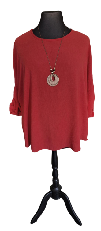 Heerlijke shirts met een ophaallusje bij de mouwen. Deze heeft een ronde hals en een ketting krijg je erbij.