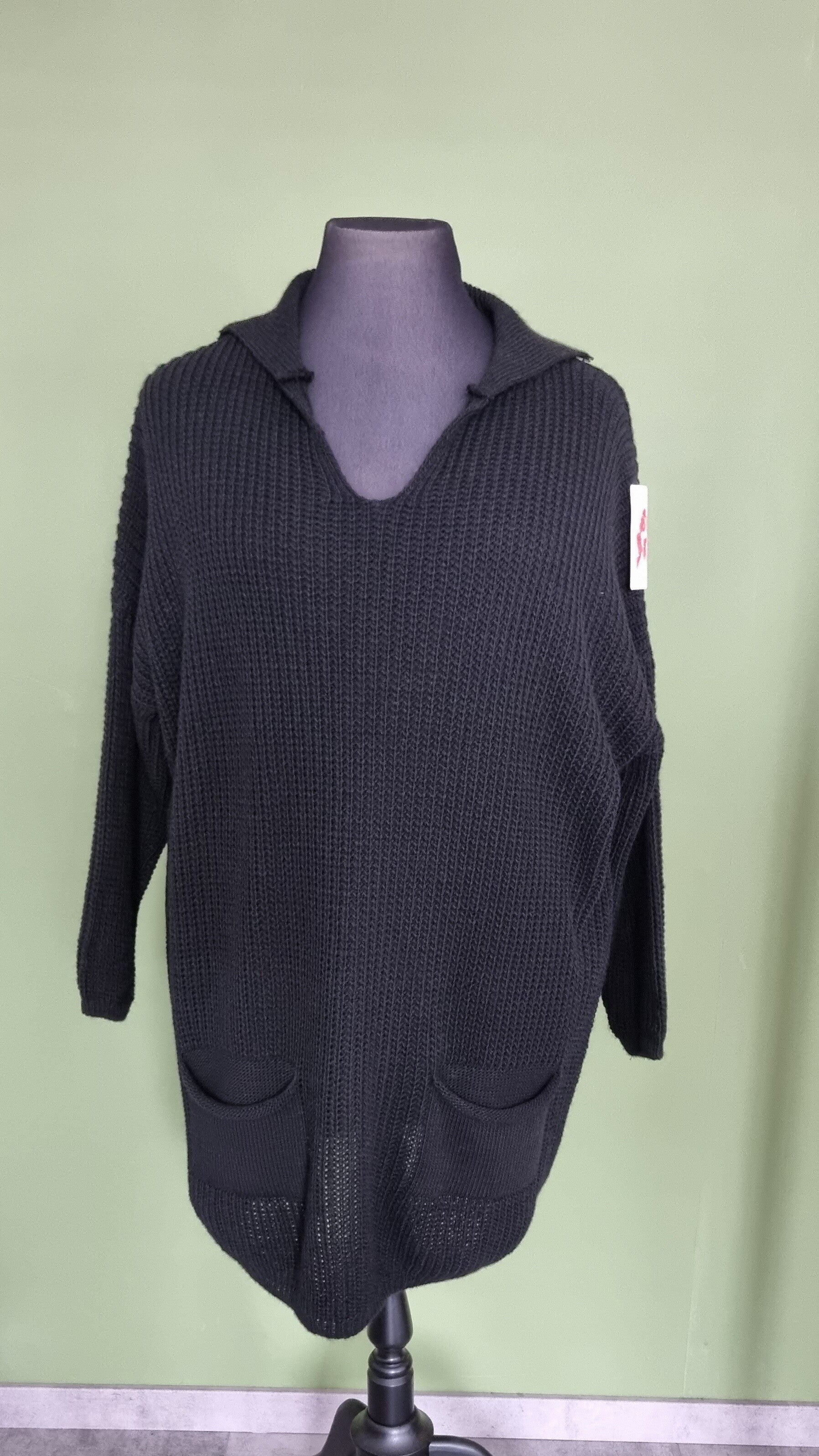 Warme truien met zakjes voorop. Een leuke v-hals en een klein kraagje.